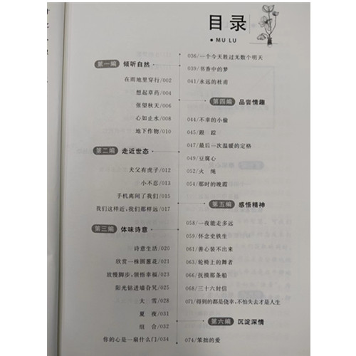 1、时文读写范本 选文内容围绕中学生学习、生活、思想情感等方面,贴近日常生活情境,极具可读性;本次甄选增补了与近三年来社会热点话题相关的数百篇文章,把握时代脉搏,更具时效性。 2、体裁丰富,文质谦美 选文包含散文、时评、杂文、随笔、议论文、记叙文等文体,兼具文学性与实用性,帮助中学生进一步理解社会生活和情感世界,探索其中蕴涵的民族心理和人文精神。 3、主题多元,意境深远 选正能量美文,理性睿智,平实温厚,针砭时弊,主题丰富多元,意境深远且构思新巧,有利于培养中学生的思辨性。 4、篇幅适中,结构完整 选文篇幅适中,千字文标准,语言通顺,结构完整,既能丰富中学生的阅读量,也为其提供了考场作文的仿写范本。 5、普世价值,理性客观 选文尊重人类普世价值,积极向上,以相对理性客观的角度看待社会与人生,正向引导中学生坚守社会责任和公民意识,充满正能量。