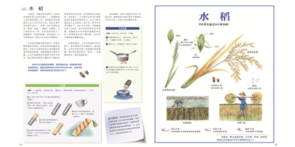 在本书中,作者和绘者详细介绍了苹果、番茄、玉米、小麦等十几种常见食用植物及树木、水、盐等自然资源,还为孩子们展示了40多种与这些植物有关的趣味小实验或食谱。清新细腻的画面将它们*美的一面展现给孩子们,也为孩子们介绍了这些事物不为人知的一面:你知道吗?苹果的“心脏”有五个腔室,香蕉植株的叶子可以作为建筑材料,全球平均每年每人要吃掉20千克番茄!