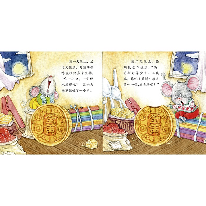 本套书语言优美,韵律感十足,故事有趣,能够让小宝宝在动手戳、摸洞洞的时候认识世界,感受到文字与图画的美。目标读者是0-3岁宝宝。《谁偷吃了月饼》这本书用充满诗意的语言和充满童趣的创意向宝宝介绍了月亮、月饼等日常生活中常出现的物体、景象,同时借助圆形到月牙形的变化,引起宝宝观察月亮的兴趣。本书的故事情节温馨动人,让宝宝在阅读的过程中潜移默化地体会到和妈妈一起分享美食的快乐。