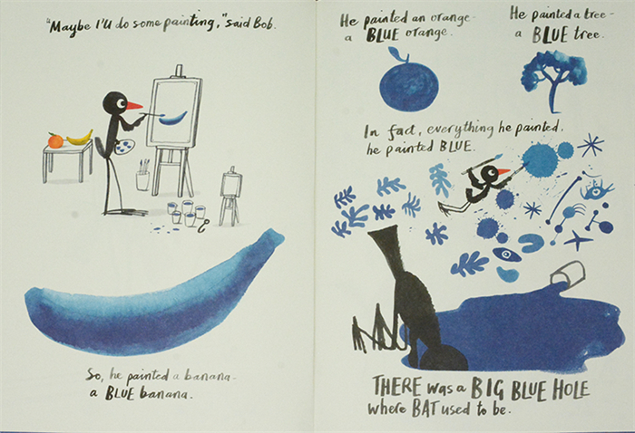 鲍勃和蝙蝠是要好朋友,但有一天蝙蝠突然离开了,没有了好朋友的陪伴,鲍勃十分难过。他用画画来表达自己的心情,因为鲍勃太想念蝙蝠了,他的整个世界都变成了忧郁的蓝色,画的画也全都是冷冷的蓝色。其他小伙伴们看见鲍勃这个样子,都想办法帮助他。伙伴们带着鲍勃去到了一个很特别的地方,鲍勃回家后做了一个彩色的梦,在这个特别的地方到底发生了什么呢?