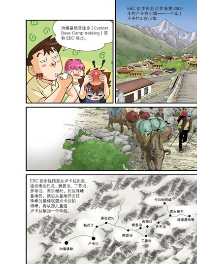 自称是“登山老手”的叔叔与路易、柳珍为了能近距离观望珠穆朗玛峰,计划珠穆朗玛徒步行山。他们先到了尼泊尔的加德满都,并在那里遇到了运送他们去往卢卡拉机场的直升机飞行员库玛丽,从此开始了正式的旅行……不料由于直升机意外坠落,一时间他们被困于喜马拉雅山谷中。那里有瞬间埋没一切的雪崩,突如其来的暴风雪,以及不知隐藏在哪里、深不可测的冰缝等等,只有化解这些随时会袭来的危险,才能生存下来。