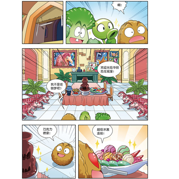2、以多格漫画的形式,讲述植物与恐龙一起冒险的故事,情节跌宕起伏,引人入胜;知识点植入自然巧妙、不教条,且经过专家严格审订,难度适中,小读者在轻松读故事的同时,还能了解准确的恐龙知识。