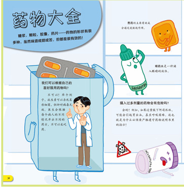 这本书介绍了皮肤、肠胃、耳鼻喉等人体主要器官和相关疾病,比如,感冒、发烧、过敏、水痘等,并对疾病的症状及诱因做出了科学解释。了解了疾病的前因后果,才能真正摆脱谈“病”色变的恐惧心理,树立正确乐观的心态,同医生积极沟通,做知无不言的好伙伴。当然啦,在日常生活中合理摄入营养物质,做个爱运动、讲卫生的小朋友才能更加有效得预防疾病,保证身体健康!