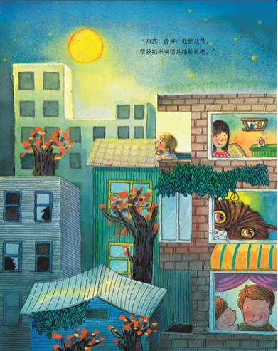 小男孩茂茂的爸爸去了遥远的北方出差。中秋之夜,茂茂和妈妈都很想念爸爸。怎样才能让爸爸知道他自己不孤单呢?茂茂找到了月亮,托它捎一张明信片给爸爸,月亮愉快地答应了。月亮出发了,浪漫和思念也出发了……它一路向北,一会变成小鱼,一会变成鸟儿,越过田野,飞过果园,经过许许多多户人家的窗前……后,月亮能找到茂茂的爸爸,圆满地完成这项爱的使命吗?