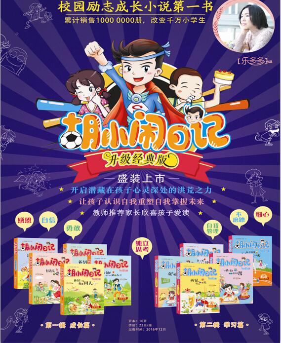 《胡小闹日记升级经典版》系列是国内首套专门为小学生创作的校园励志小说,被誉为儿童成长文学、校园励志文学的开山鼻祖和书界传奇,一直被模仿,从未被超越。不同于传统的校园文学,不同于新生的魔幻儿童文学,不同于老牌儿童文学作家的传统风格,在中国儿童文学领域,《胡小闹日记升级经典版》的特色独树一帜、开“励志成长儿童文学”之先河。儿童文学出版领域,符合这个时代主旋律——“中国儿童梦”的儿童文学的作品并不多,成系列、富有品牌效应的更是*,本次升级经典展的出版,也将这一特色推到了一个崭新的高度。