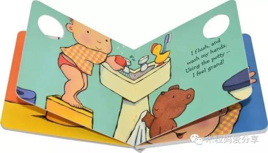 学习使用小马桶的幼儿书有很多款,有的是介绍学习丢尿布的过程,而这本Caroline Jayne Chruch (I Love through and through作家)的新书,是描述已经顺利丢尿布之后的过程,会上小马桶的小朋友,已经知道何时该准备去上厕所、上完厕所该有什么清洁动作,透过可爱的 画风和小马桶冲水的声音,让幼儿们更能感受上身历其境的感觉哦^^