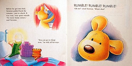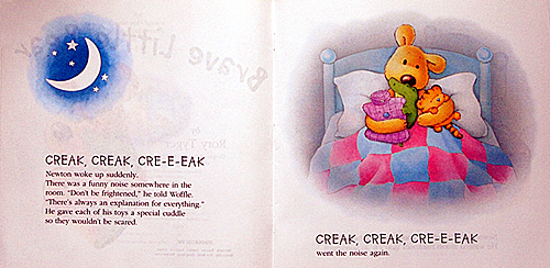 Newton woke up suddenly. "Don't be frightened," Newton told his toys,"there's always an explanation for everything." So with his bravest toy, Snappy, tucked under his arm, Newwon set out in the dark to find out what the scary noises were...