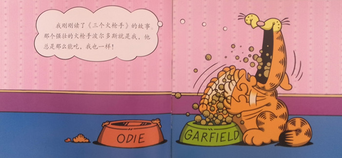 加菲在阅读了名著《三个火枪手》之后,想象自己便是书中的主角。但是,当乔恩催促加菲做家务时,加菲却利用火枪手们的性格作为借口,拒绝劳动。加菲一会儿说火枪手们不会还没吃完饭就劳动,一会儿又说火枪手用锋利的剑当上队长,而不是洗盘子。最后,当乔恩喊加菲去捉老鼠时,加菲不情愿地答应了,却被一大群老鼠吓得抱头鼠窜,嘴里还喊着让火枪手来救他。