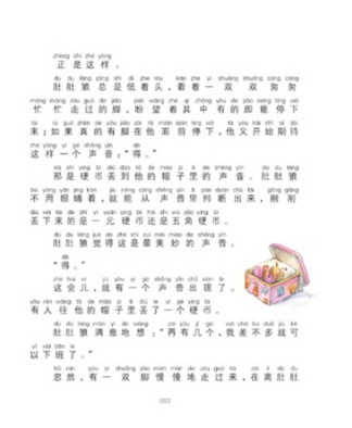 《月光下的肚肚狼》是一部能让你一口气读完的中篇童话,清新明快,语言风趣,情节精彩,引人入胜。冰波先生在这部作品中,除了保持一贯的优美抒情的风格,还展现了特具的幽默趣味和高超的讲故事的技巧。它不是一个特别惊人的故事,也没有讲什么特别深奥的道理,但是故事的发展丝丝入扣,将读者不知不觉地引入一个优雅的幻想世界,随着情节的深入,每个人物愈来愈清晰地展现在舞台上,我们渐渐感受到那种久违的人与人之间的温情,不禁感动、升华。主人公肚肚狼是一只能在月圆之夜变成王子的“乞丐狼”。刚开始,肚肚狼变王子只能持续几分钟,然后就变回了当乞丐的样子。而只有当肚肚狼变王子的时间持续24小时后,才可以变成一位真正的王子。