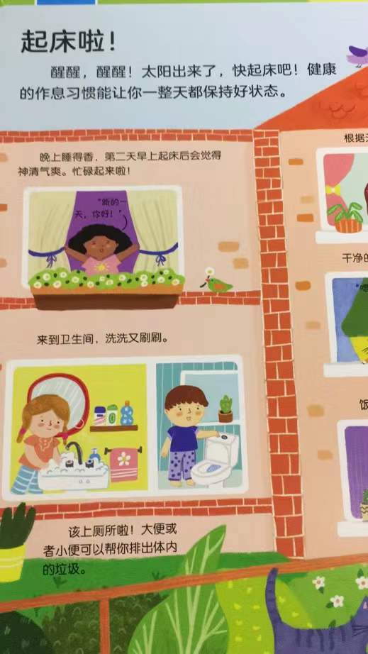什么是健康?日常生活中应该注意什么?哪些运动对身体健康有好处?不同的食物对健康有不同的影响吗?如何保持牙齿健康?为什么要有一个健康的身体?……本书通过翻翻页的形式,介绍了与健康有关的一系列知识,从家里到户外,从学校到医院,帮助孩子从细微之处认识健康,感受的健康的重要性,帮助孩子从小养成良好的生活习惯与健康观念。 本书从“健康”出发,通过起床啦、快乐的运动、健康的饮食、一起做饭、定期体检、快快好起来、晚安啦七个方面为孩子讲述生活中与健康相关的知识。