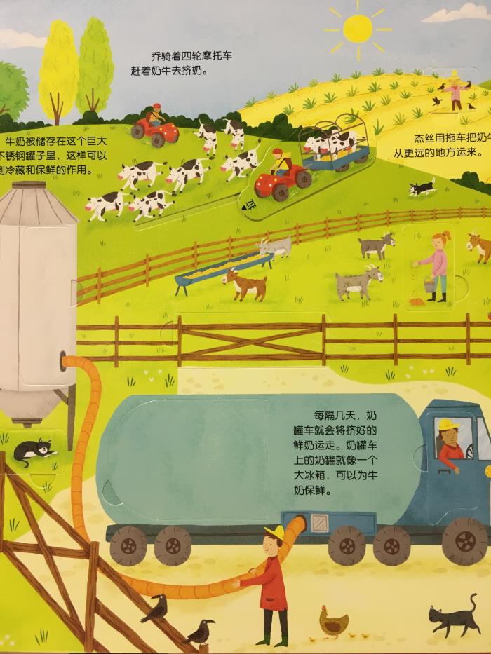 本书通过翻翻页的有趣形式为小朋友介绍了关于农场的各种知识。农场里有什么?怎样挤牛奶?怎样剪羊毛?怎样喂鸡、收鸡蛋、耕种、收获……还有美丽的田园风光、丰富多彩的农场生活,让自然的气息涤荡孩子的心灵,感受农场的生机勃勃。全书内容丰富,并采用众多翻翻页,有利于孩子手脑互动,增添阅读的兴趣。