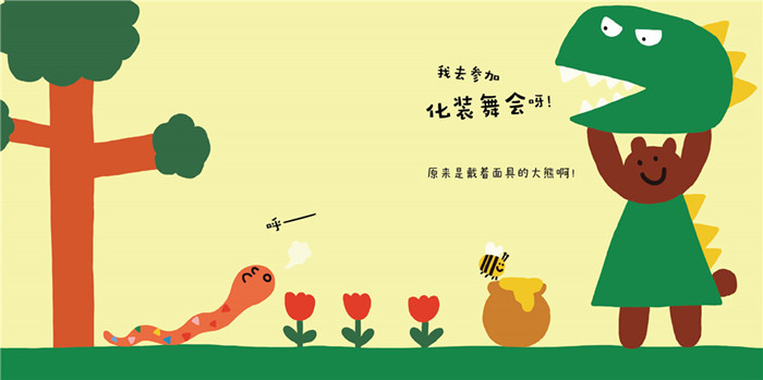故事贴合0-3岁宝宝的理解能力和心理活动。在《小蛇弯弯参加化妆晚会》里,不同的动物轮番出现,在认知动物类型的过程中,孩子能根据故事找规律,推理下一页的发展