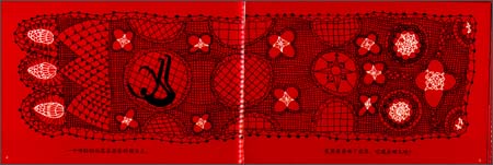 《若昂奇梦记》书中写了一个叫若昂的男孩在黑夜里,独自躺在自己的床上,等待着外出捕鱼的父亲归来。他想要用睡眠来努力抵抗身体里面逐渐膨胀着的那份不安感,然而,在身体的静态中,他的想像力却不能抑制地奔腾起来。透过若昂的梦境,我们看到了一个孩子如何勉力抵御着他内心小小的恐惧感。全书黑、白、红三色的配合,来表现黑夜、梦境和幻想混合在一起的奇妙感觉。画面的线条和图样透着手工织物特有的柔软、纤细而精致的质感——这或许也正是幻想的质地。