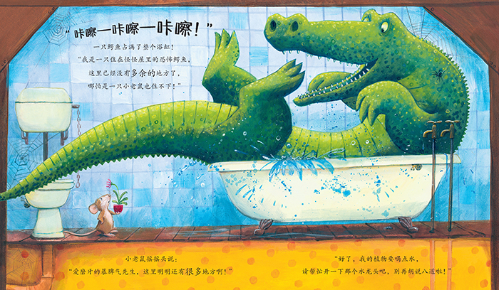 本书为儿童绘本故事(无电子书目)这是一本由天才组合——作家特蕾西·科德里和画家简·查普曼创作的很棒的图画书。这个关于意外友谊的有趣故事处处充满了惊喜。小老鼠搬进了新房子,但是谁在房子里用钢琴发出咆哮声呢?谁在楼梯扶手滑下来呢?噢!这里有这么多大大的动物住在这间房子里,还真是很挤呢!就在大家打算住下来的时候,他们听到了巨大的声响。这可把这几只“凶巴巴”的动物吓得够呛。动物们发现原来是鼹鼠在挖地道,鼹鼠居然把房子底下挖出了一个大洞!可是大家都很高兴,因为房子变大了很多呢,这下大家都不用再挤来挤去了。书的最后一页的是一个弹出来的大拉页,和前文的拥挤形成鲜明对比,对孩子们来说,这个大拉页是一个惊喜。