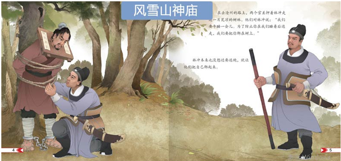 《水浒传》是中国古代章回体小说中的杰作,名列中国古典四大名著之一,由元末明初施耐庵编著,通过描写梁山好汉反抗欺压的宏大故事,热情地歌颂了起义英雄的反抗斗争。本套《古典名著水浒传儿童绘本系列》从《水浒传》中精选精彩故事,由冰心奖获奖作家改编文字,由中国风绘画高手倾情绘制,将名著改编为让儿童更容易理解的作品。 《风雪山神庙》讲的是梁山好汉林冲被不断迫害,终走上造反道路的故事。林冲被奸臣高俅陷害,发配到沧州从军,在路上险些被杀害。到沧州以后,竟连监狱长官也被收买了。后,林冲终于不再忍耐,消灭了敌人,走上了反抗的道路。