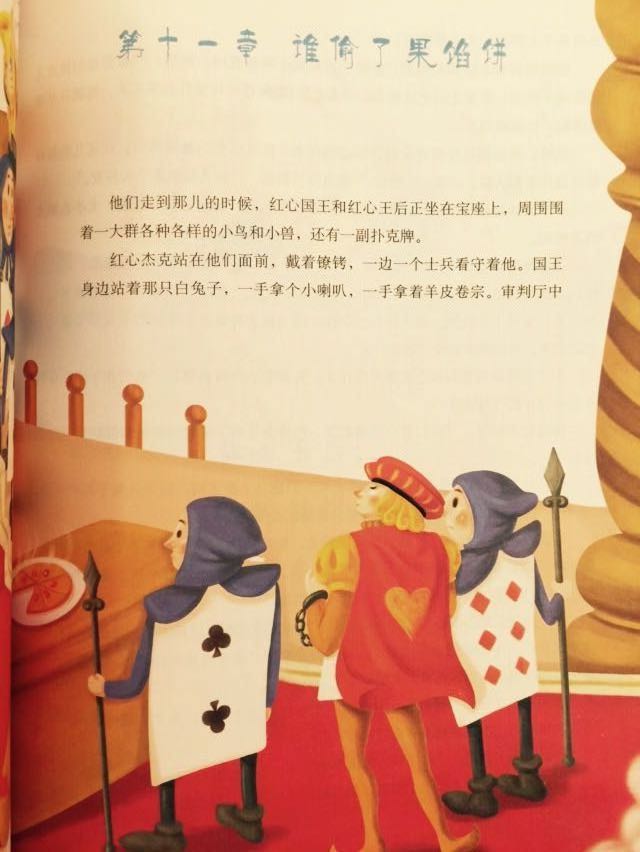 讲述一个名叫爱丽斯的女孩子从兔子洞进入了一处 神奇的国度,遇到了许多稀奇古怪的事情。她会莫名其妙地变换大小,她可 以和毛毛虫聊天,和龙虾跳舞,还可以跟纸牌玩槌球游戏……最后她发现原 来一切只是自己美丽奇幻的梦境。 《爱丽斯漫游奇境》于1865年发表,作品一时轰动文坛。1871年,刘易 斯·卡洛尔又出版了其姊妹篇《爱丽斯镜中奇遇》,两部作品风靡欧美。卡 洛尔的童话是自莎士比亚作品之后,被翻译得最多的英国作品。20世纪20年 代,赵元任先生最早把这部作品译介到中国。1969年,以美国学者为首建立 了世界性组织——卡洛尔协会,现在会员遍及美、英、法、日等国。卡洛尔 以其创作饮誉全世界。