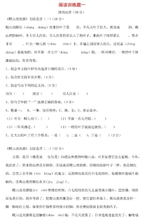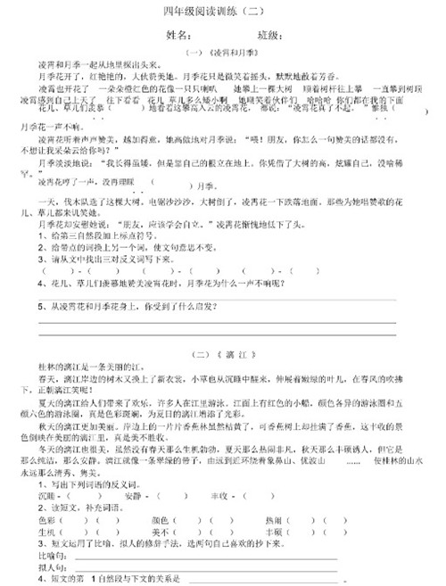 四年级 小学语文阅读训练80篇