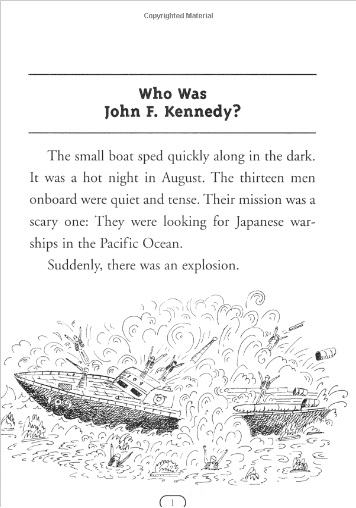 The man who saved the lives of his PT-109 crewmen during WWII and became the 35th president fought-and won-his first battle at the age of two-and-a-half, when he was stricken with scarlet fever. Although his presidency was cut short, our nation's youngest elected leader left an indelible mark on the American consciousness and now is profiled in our Who Was...? series. Included are 100 black-and-white illustrations as well as a timeline that guides readers through this eventful period in history.