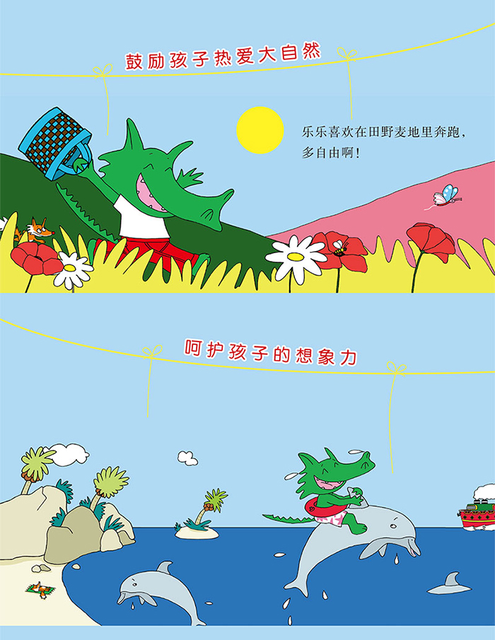 乐乐是一只正在上幼儿园的小鳄鱼,和爸爸妈妈生活在一起,还有一群要好的小伙伴。他喜欢音乐、喜欢园艺、喜欢做饭、喜欢说不,偶尔也调皮捣蛋。他就像每个小朋友的幼年,在懵懂中学习生活的规则,慢慢长大。 乐乐喜欢音乐乐乐从小就喜欢音乐。生日到了,他要和小伙伴们一起开一场音乐会。 乐乐喜欢爸爸乐乐和爸爸一起去森林里散步。爸爸教乐乐采蘑菇、摘桑葚,还一起钓鱼。父子俩在一起真开心。 乐乐喜欢妈妈乐乐生病了。妈妈带他去看病,还给他煮汤、讲故事,哄他睡觉。妈妈真好。 爱做梦的乐乐无论在哪里,无论什么时候,乐乐总是在做梦。他想象自己在天空里,在大海里,甚至到了外太空。 乐乐喜欢园艺乐乐带着妹妹去花园里种花。从松土、播种、等待发芽,到开出花朵,真是太有意思啦。 乐乐喜欢四季乐乐喜欢四季。不同的季节有不同的乐趣,乐乐都喜欢。 爱漂亮的乐乐乐乐可爱美了。他自己洗漱、洗澡、穿衣服,打扮得漂漂亮亮。 爱说不的乐乐自从乐乐学会了说不,就停不下来了。妈妈有点生气了,但很快,妈妈就想出了一个好办法。 乐乐喜欢大自然乐乐喜欢在田野里奔跑,喜欢爬树,喜欢观察小动物。乐乐喜欢大自然,因为它很神奇。 乐乐喜欢圣诞老人明天就是圣诞节了。乐乐多么盼望能见到圣诞老人呀!