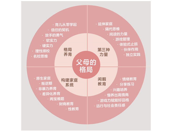 养育孩子,不仅是让孩子健康不生病,吃饱穿暖,更应该考虑把孩子培养成什么样的人。父母的格局,决定了养育孩子的视野、态度和方法。 《父母的格局》是一本给父母的全面“格局养育”指南,旨在帮助父母用格局视野破解养育难题、应对焦虑的当下和多变的未来! 作者通过自己20多年来中美两地养育孩子的亲身经历,和十多年来与中国年轻父母探讨育儿经验的独特体悟,融合世界前沿科学理论与育儿理念,构建出育儿大格局的4种智慧和4种行动;如何巧用一本书、一个榜样等“第三种力量”,而非打骂、责罚等方式,推动孩子自我改变;如何做好闲暇教育,让孩子“浸”在闲暇时光,“泡”出高情商、好品格;如何培育良好的亲子关系,把家营造成爱的港湾……