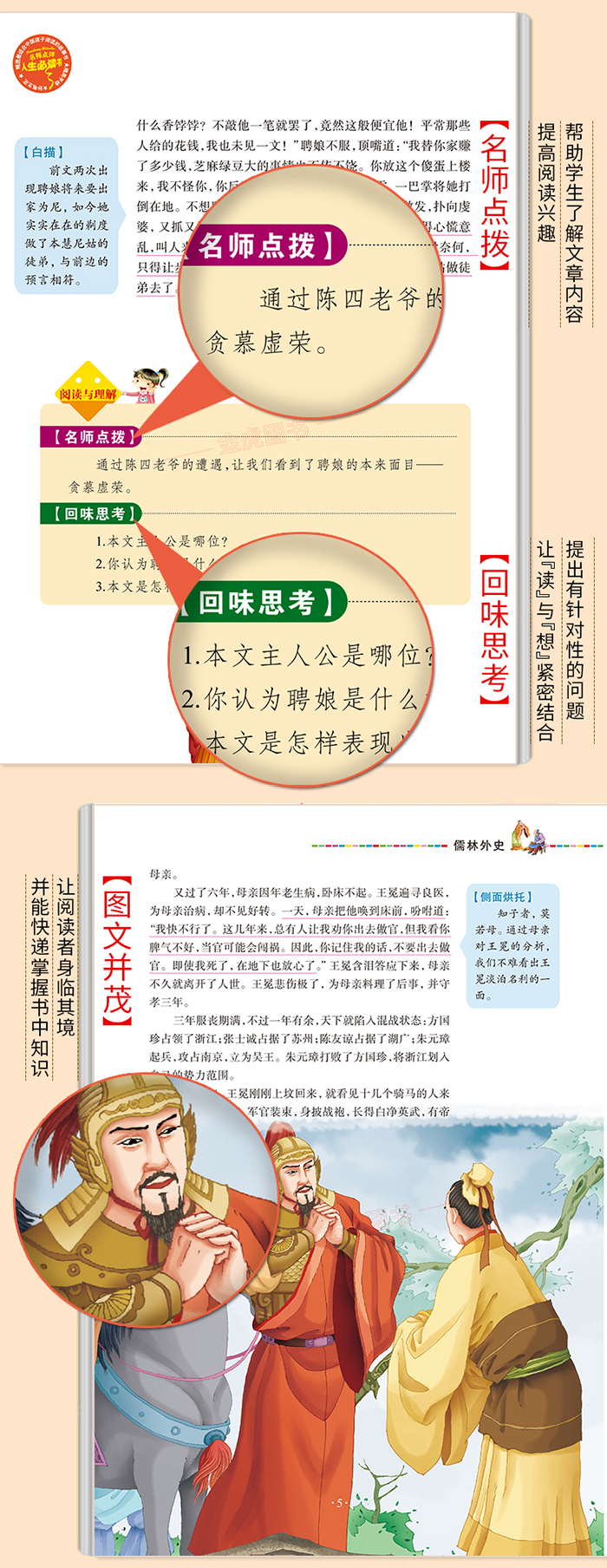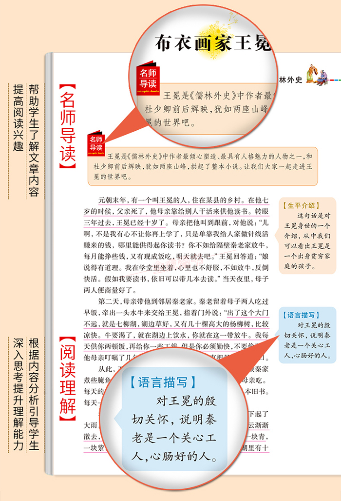 《儒林外史》是我国文学史上一部杰出的现实主义的长篇讽刺小说。作者吴敬梓以亲身经历为素材,在这部作品中塑造了封建社会末期知识分子群像,寄托了他看重文行出处、鄙视功名富贵的高尚情操。小说以生动形象的笔墨,逼真地反映了当时的社会,是一幅活生生的世相图。