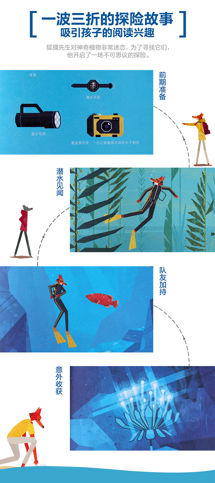 夏日清晨,狐狸先生喜欢沿着海边小径悠闲漫步。他的远房亲戚狼先生的度假小屋就在不远处,所以他们经常一起散步。