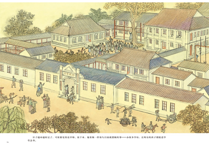 这是一部关于清末状元、近代实业家张謇的传记绘本。主要讲述张謇在清末列国入侵之际,毅然弃官,在家乡濠河边办实业以发展经济,兴教育以开启民智,做慈善以改善民生,建城市以促进文明,以强毅之力行其志,以振兴家乡、复兴民族之大爱与豪气。为中国现代化制度建设奠定坚实基础的故事。