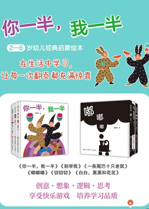 《你一半,我一半》这本图画书尝试画出孩子“你一半,我一半”的质朴想法,和“你一个,我一个”分东西的做法。然而有趣的是,“分”不见得是 生活中最好的做事方式:有时分了可“两相获利”,但有时分了却是“互蒙其害” 年事稍长,重看曹老师的作品,惊觉其简单中蕴藏着深刻的智慧。 -幸曼玲台北市立大学幼儿教育学系副教授 阅读,是读者与文本互动的过程。好的文本能唤起读者过去的经验、引发读者预测书中的内容,而且内容往往出乎意料,让人感到有趣、产生新的看法。《别学我》就是一本这样的好书。 --陈欣希台北市立大学幼儿教育学系讲师 这是一本难得一见的童书,不仅语言幽默、充满童趣,还能帮助孩子学习数字、音韵,养成合作和其他重要观念。我推荐父母和孩子一起读《一条尾巴十只老鼠》这本书,不但可以拥有一段快乐的亲子阅读时光,加强亲子关系。还会在大笑声中轻松地解决许多数学难题。 -严淑珍美国加州州立大学富乐顿校区幼儿教育系教授 游戏能调动孩子主动参与学习的积极性。然而,学校教育强调看得到的教 学成效,有时反而把好玩的事情变得无趣。站在更宏观的教育立场,我们希望把有趣的游戏与学习的教育价值完美结合成乐育(Edutainment)。《切切切》这本简单易懂的创意游戏绘本就很好地示范了游戏化学习的乐育功能。 --张世宗台北教育大学艺术与造型设计学系教授