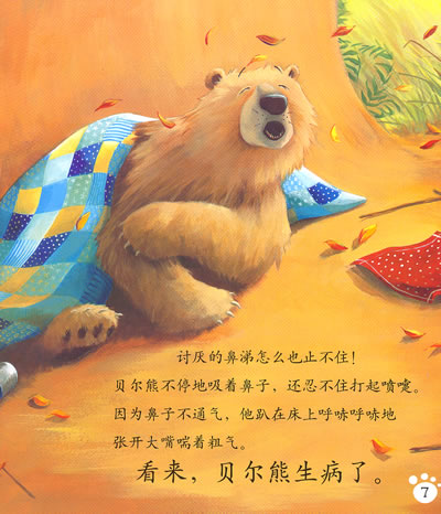 凉爽的秋天来了,贝尔熊却感到浑身不舒服——他感冒了。这时,朋友们都来照顾他,陪伴他……