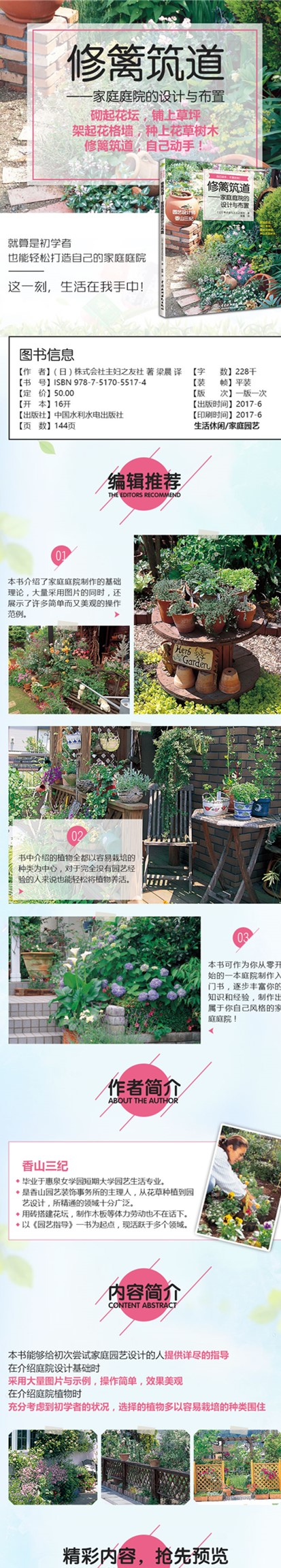 3、 将本书作为你从零开始的*本庭院制作入门书吧!逐步丰富你的知识和经验,制作出属于你自己风格的家庭庭院!