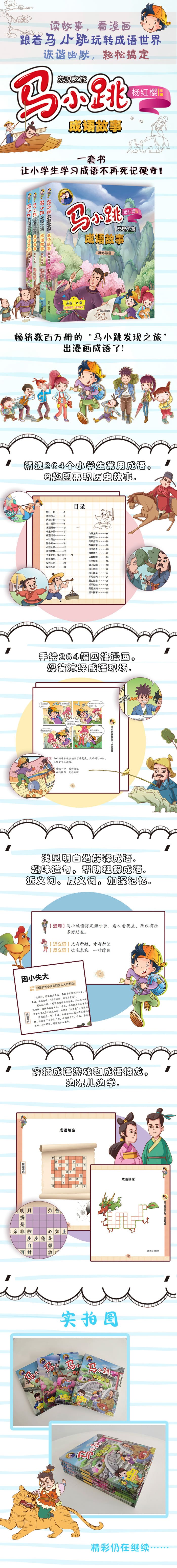 在“马小跳发现之旅”的“成语故事”4册小套系中,小朋友们可以跟着马小跳和他的伙伴们,与漫画和故事的形式了解成语的含义、学会使用成语。本小套系还配置了成语接龙、成语填空这两个趣味十足的版块。在“马小跳发现之旅”的“成语故事”4册小套系中,小朋友们可以跟着马小跳和他的伙伴们,与漫画和故事的形式了解成语的含义、学会使用成语。本小套系还配置了成语接龙、成语填空这两个趣味十足的版块。4册分别为《照猫画虎》《掩耳盗铃》《惊弓之鸟》《囫囵吞枣》。