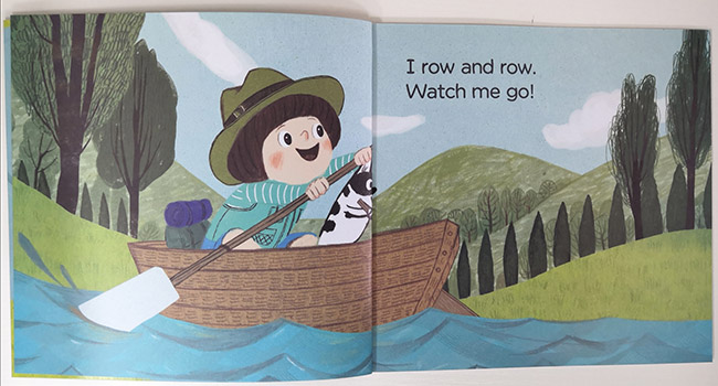 小女孩儿带着她的小狗来到丛林探险。他们划着小船,哼着歌,顺流而下。一路上他们遇到了哪些可怕的动物呢?