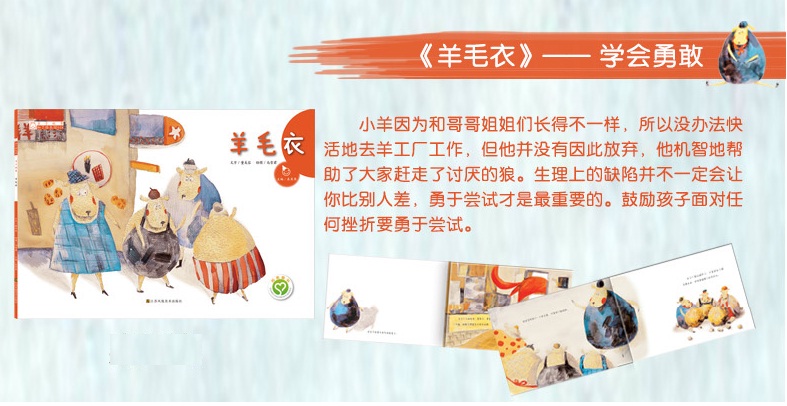 小羊因为和哥哥姐姐们长得不一样,所以没办法快活地去羊工厂工作,但他并没有因此放弃,他机智地帮助了大家赶走了讨厌的狼。生理上的缺陷并不一定会让你比别人差,勇于尝试才是最重要的。鼓舞孩子面对任何挫折要勇于尝试。