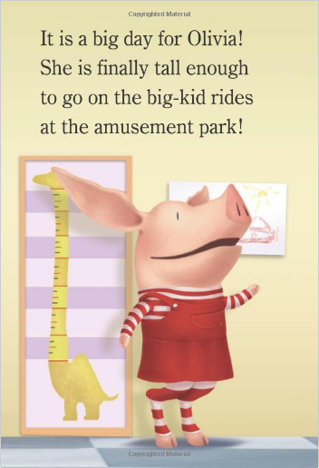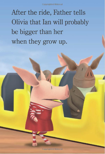 Olivia is upset when Father tells her that someday her little brother Ian will probably grow to be taller than she is. Olivia is determined to stop that from happening…after all, she is Ian’s BIG sister!