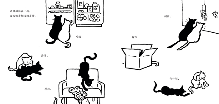 书中的最后一页,两只猫幸福地进入梦乡,在对爱的满足中逐渐完成生命的循环。