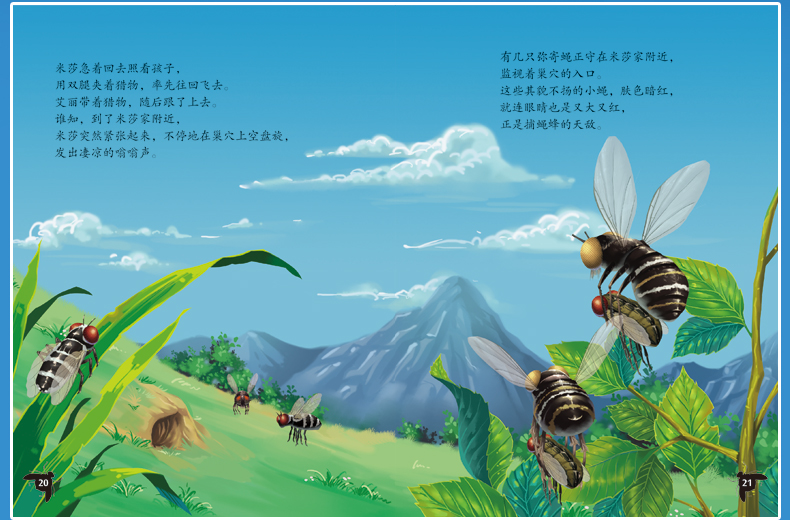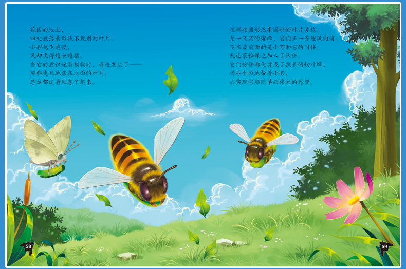 小林清之介文笔优美清新,保留了昆虫记中的知识点,而用亲切的语言讲述,更加适合孩子阅读。绘画十分逼真,活灵活现,色彩艳丽,如同多姿多彩的大自然,翻阅起来,有亲临大自然的美感。而为了让读者了解真实的昆虫,画家还用心地为读者绘制了与现实中一般大小的虫子。