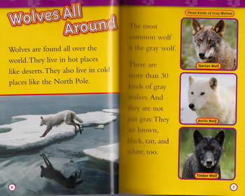 In this fascinating level 2 reader, you'll learn that there's muchmore to being a wolf than most people could ever believe. Did youknow that each pack has a pecking order? That wolves can "talk" toeach other using body language? Or that they're actually not out toattack humans, they usually leave people well enough alone? Full ofincredible photographs and interesting information, NGRWolves will appeal to all kids.