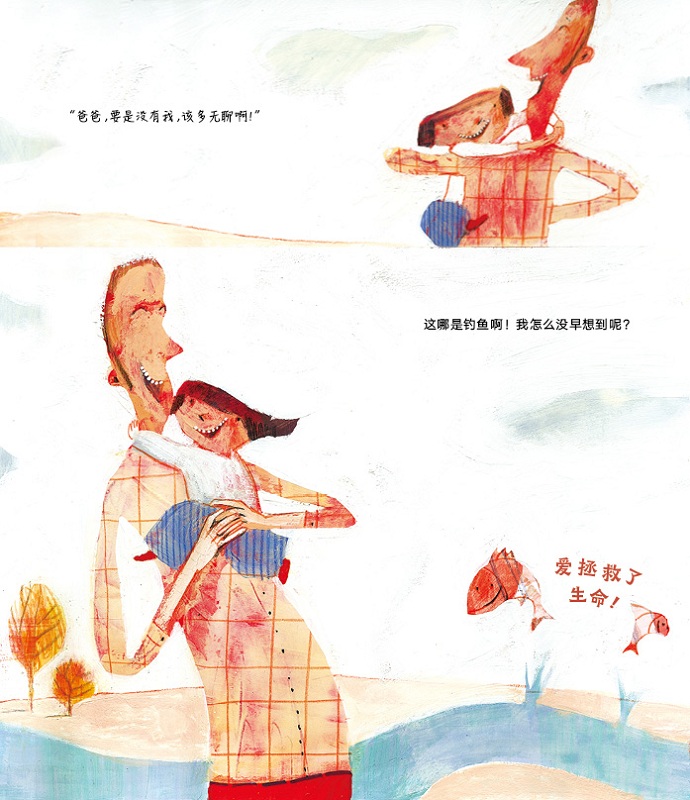 《爸爸,我们去钓鱼吧!》:钓鱼时候,爸爸要专心垂钓,孩子却把鱼饵全部放走!