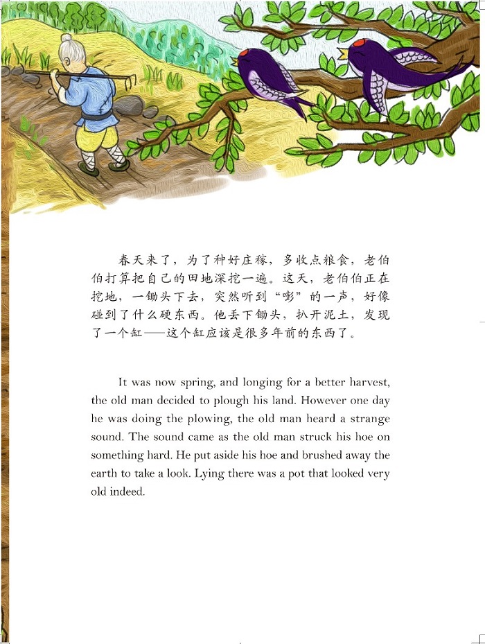 传统故事美绘本双语版,为喜欢传统故事和学英语的女儿买的,一举两得。双语是这本书的特色,既可以了解传统的中国故事,又可以提高英语阅读。