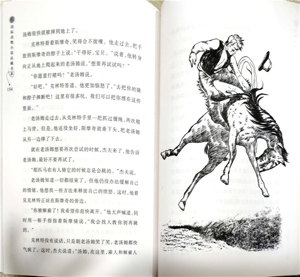 《野马斯摩奇》曾获得纽伯瑞儿童文学奖金奖。本书讲述了一匹名为斯摩奇的野马从出生到年迈的传奇一生。斯摩奇本是一匹野马,出生在荒原上,过着自由自在的生活,后来被一位名叫克林特的牛仔所捕获,成为了一匹出色的牧牛马。斯摩奇生性聪颖,很快就在当地名噪一时,这也引来了众人对它的觊觎。终于有一天,它被人偷走了。随着主人的几经更换,斯摩奇也经历了种种境遇……