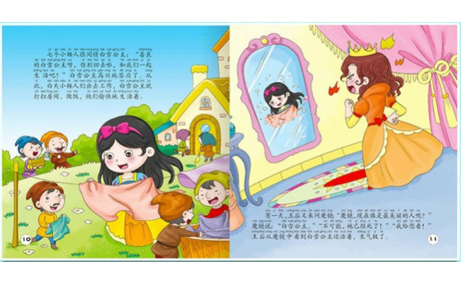 本册内容为《白雪公主》。故事讲述了一个可爱美丽的公主因为后母嫉妒其美貌而被迫逃到森林中。在森林中,她遇到了七个善良的小矮人。最后在他们的帮助下,白雪公主打破了后母的诅咒,并找到了真爱。故事告诉我们只要保有一颗善良的心,终究会得到幸福。
