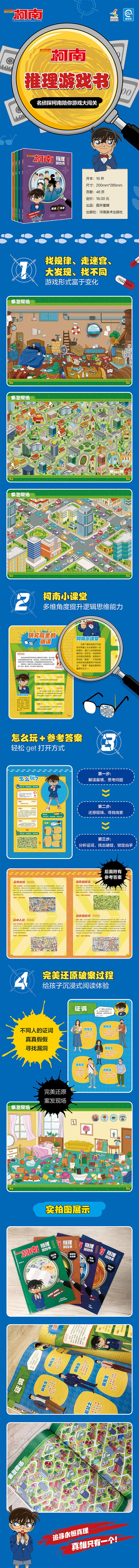 名侦探柯南推理游戏书,经典烧脑益智游戏,锻炼孩子思维。 完美还原破案过程,沉浸式阅读体验,完善孩子缜密思维能力。.游戏丰富多彩,提升孩子升观察力、注意力、逻辑推理力。