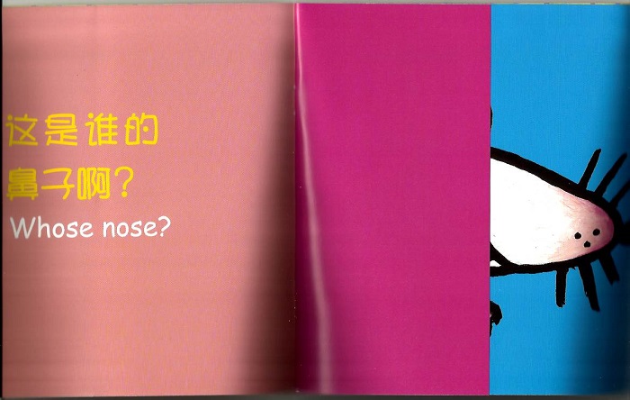书中的翻页,让孩子体验发现的快乐。同时,这就像是躲猫猫的游戏,有助于发展宝宝物体恒存的概念,可以帮助孩子克服分离的焦虑。
