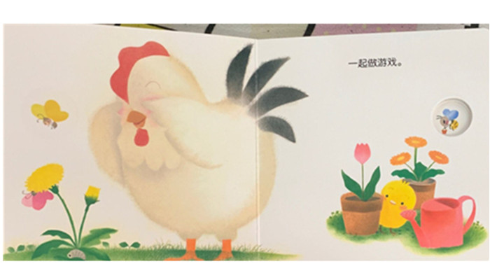 几个月大的小宝宝手指尚未完全发育,不能灵活地翻动纸书。《和小鸡球球一起玩》采用了手掌大的小开本、每一个页面都是厚厚的纸板,可以让宝宝当作玩具一样捧在手上随意地玩弄,促进他们手部肌*的发育。爸爸妈妈们不用担心他们撕扯,也不用担心他们流口水……《和小鸡球球一起玩》书页设计成了圆角,洞洞的开孔也采用了特殊的方法,边缘圆滑,不用担心纸张会割到宝宝细嫩的皮肤。 书里有立体、模切、拉页等多种设计元素的融合,让小宝宝和小鸡球球的阅读探险充满了惊喜。小小的惊喜感会让宝宝对图书产生浓浓的兴趣,这种兴趣会激发他们对图书的亲密感,养成爱读书的好习惯。而通过互动游戏来给孩子进行启蒙认知,只是这套书的一部分功能,更多的是在亲子阅读时,用这些温暖的小故事让亲子间的羁绊更加紧密,对孩子进行情感上的启蒙。通过一些日常生活场景的展示,表现出孩子们对爸爸妈妈的依恋,在温馨的亲子共读时光中一起翻开这些书,又暖又萌的画面让人心都快化了!