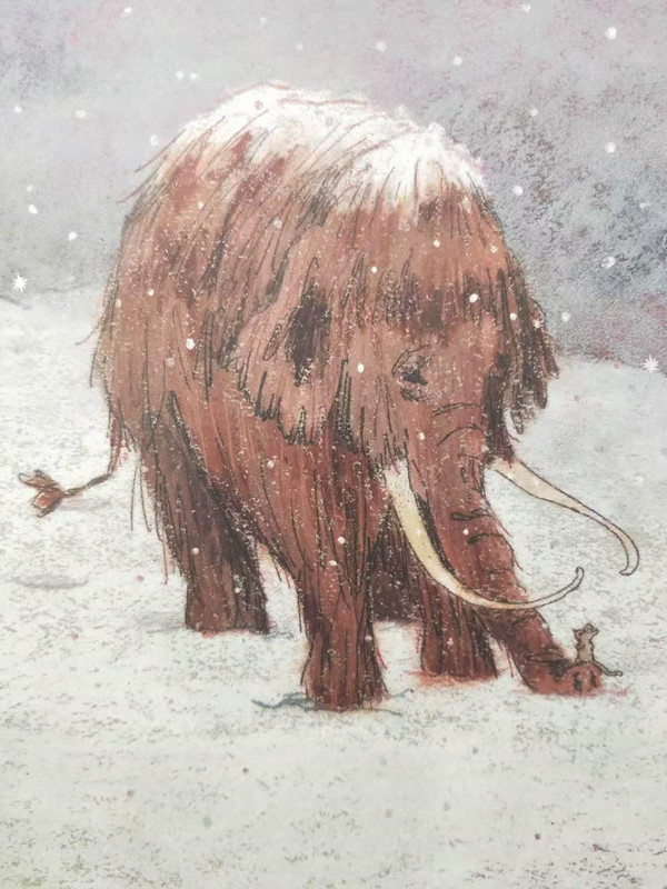 《雪中的猛犸象》是一本关于善意和友情的图画书。猛犸象独自照顾着一片蒲公英花田,他很孤独,渴望能有个朋友。他对前来讨要蒲公英花朵的小红鸟,和大雪中遇到的小老鼠,都给予了善意的帮助和关怀,终于收获了珍贵的友谊。