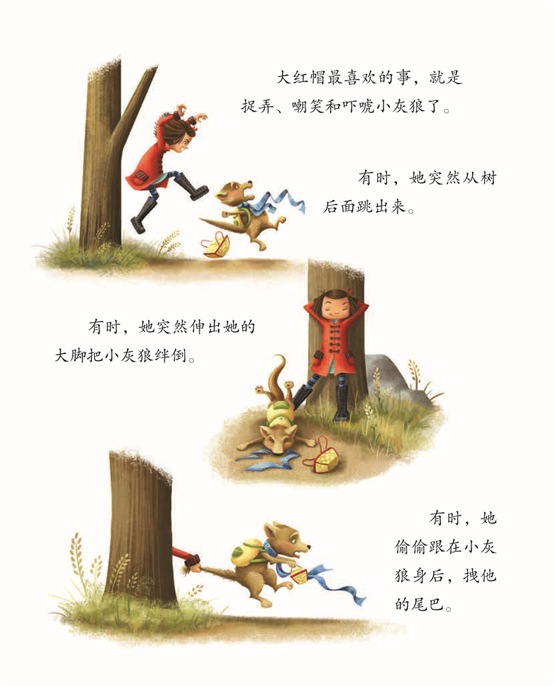 本书是给3-6岁孩子看的亲子绘本,通过对经典故事小红帽的改编,本书讲述了关于一只小灰狼在每天上学路上总是受到大红帽欺负的故事。小灰狼试图忽略大红帽,告诉她停下来,或者把自己装的很强大,但是*终他用了一些出乎意料的方法让对方停止了欺凌行为。书后所附的《写给父母的话》,详细向家长讲述了如何跟孩子一起读这本书,以及家长如何发现孩子在校园受欺负,并提供了孩子应该怎么做才能保护自己的策略。