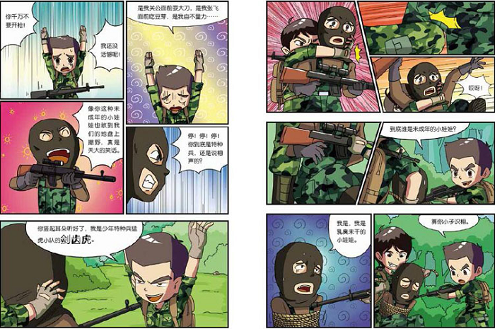 丛书包括《新兵集结号》《冲破特训营》《树屋上的敌人》《大战海贼王》4种。这套少儿军事文学图书以2012年中国成立的第一所特种兵学校为背景进行创作。学校成立之后,从全国招收了第一批少年学员,这些娇生惯养的独生子女进入特种兵学校后,开始人生的历练。本套书在保持原著精华的基础上,用漫画的形式生动呈现了特种兵学校中少年学员的故事,特别适合“特种兵学校”粉丝们及年龄段更低的孩子阅读。