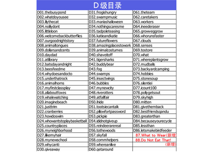 2、各大体系的英文分级读物各有各的优势,建议相互穿插,可以根据每个孩子不同的口味进行选择和调整,通过大量的阅读来建立孩子阅读的能力和知识扩充。家长千万不要为了“完成级别”而强行逼迫孩子读不喜欢的主题,尤其是学龄前,英语学习还是以兴趣为主。