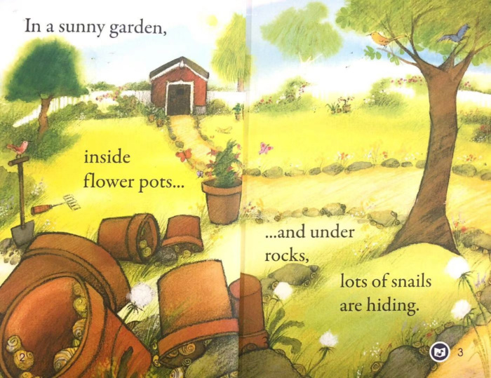 在阳光明媚的花园里,花盆中、石头下,藏着许许多多的蜗牛
