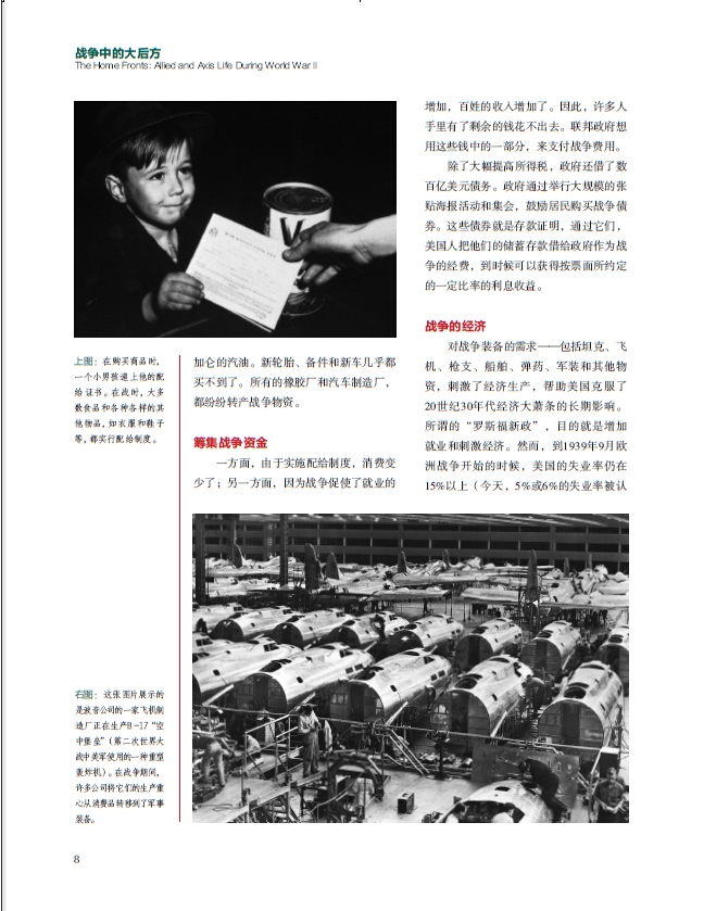 《战争中的大后方》作为系列图书的分册,着重描写了二战期间交战双方国内民众的生活,对当时各国国内的社会、经济、政治等各方面情况进行了简单的介绍。通过这些介绍,读者可以对第二次世界大战期间各国的社会情况有所了解。